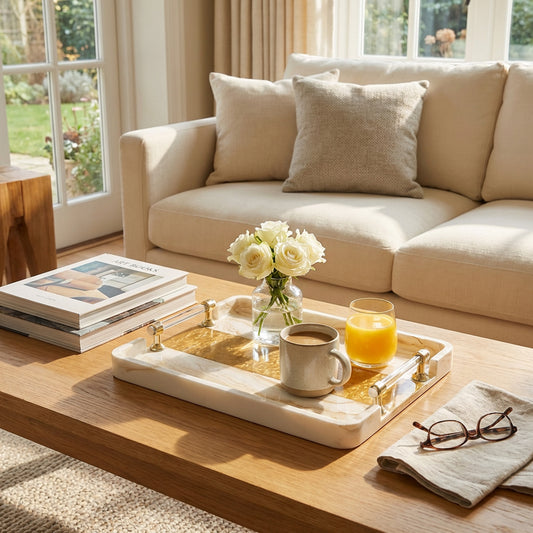 Marble Design Serving Tray Brown & White