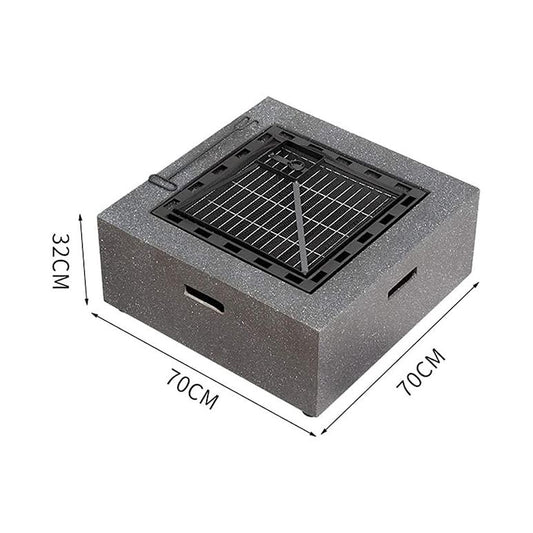 Square Outdoor Fire Pit with BBQ Grill Shelf Grey
