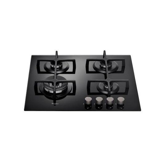 Whirlpool 60cm 4 Burner Gas On Glass Hob Black