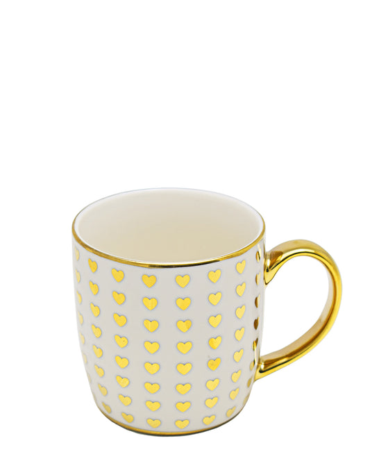 Kitchen Life Ceramic Embedded Heart Mug - White & Gold