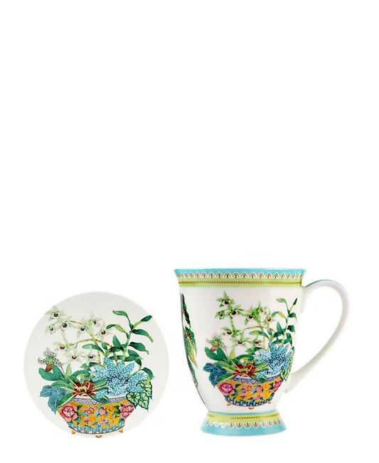Maxwell & Williams Gabby Malpas Jardin Orchid Mug & Coaster Set - White