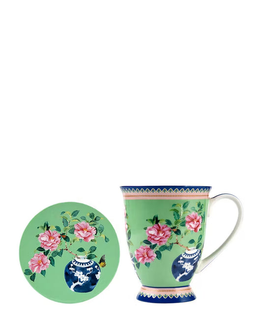 Maxwell & Williams Gabby Malpas Jardin Camelia Mug & Coaster Set - Green