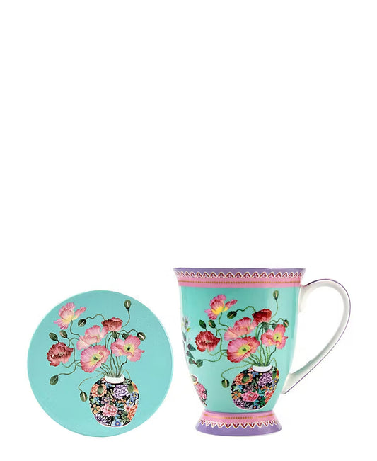Maxwell & Williams Gabby Malpas Jardin Poppy Mug & Coaster Set - Blue