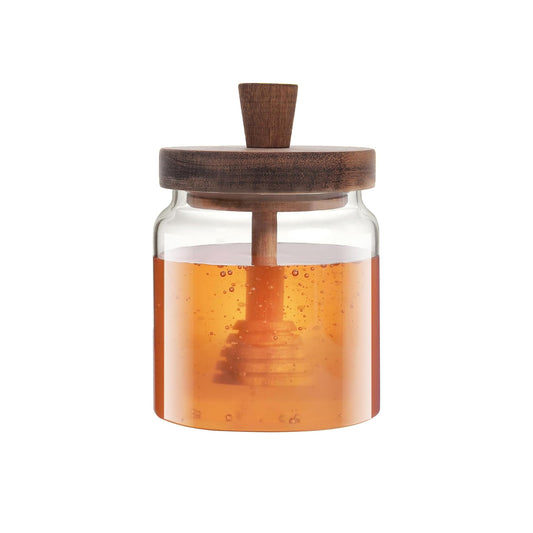 Aqua Borosilicate Glass Honey Pot with Acacia Lid Clear