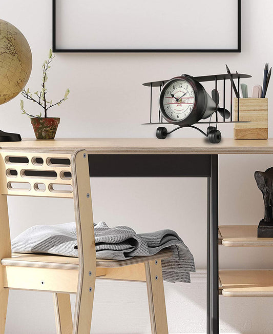 Urban Decor Retro Clock Airplane - Black