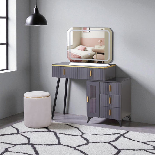 Exotic Designs Modern Dressing Table Set with LED Mirror Grey & Gold