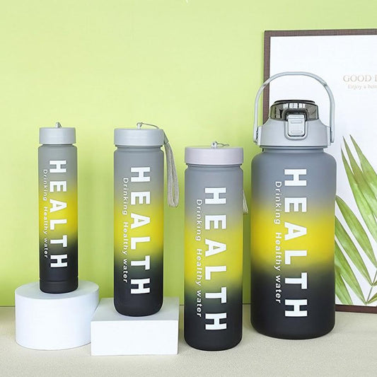 Kitchen Life 4 Piece Water Bottle Set Black, Yellow & Grey