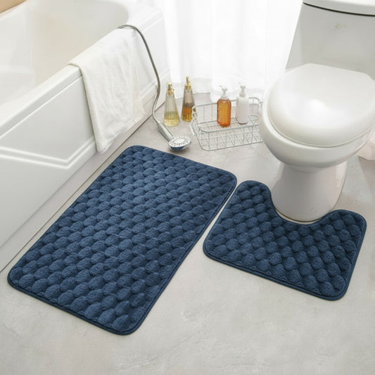 2 Piece Bathroom Mat Set Blue