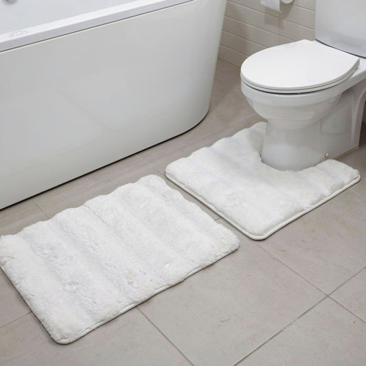 2 Piece Bathroom Mat Set White