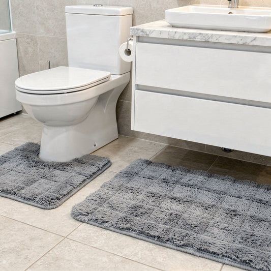 2 Piece Bathroom Mat Set Grey