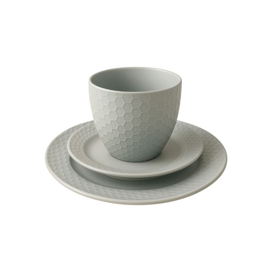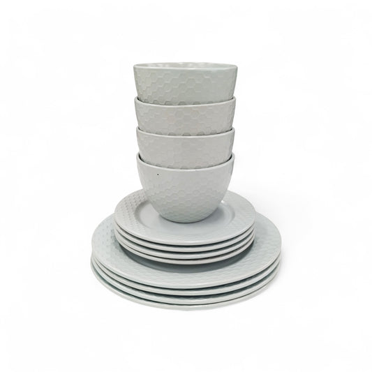 Kitchen Life 12 Piece Honeycomb Dinner Set Light Grey