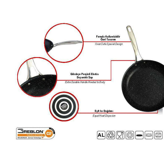 Leydi Cast Alumınum 36cm Double-Sided Pan Black