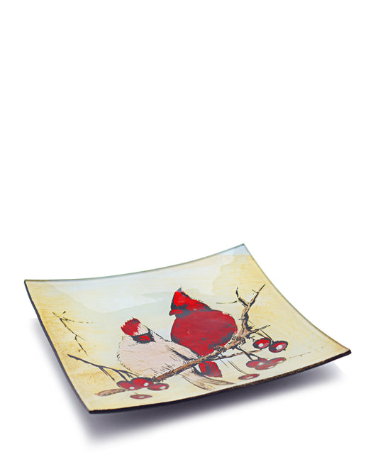 Kitchen Life Cardinal Pair Square Plate - Red & White