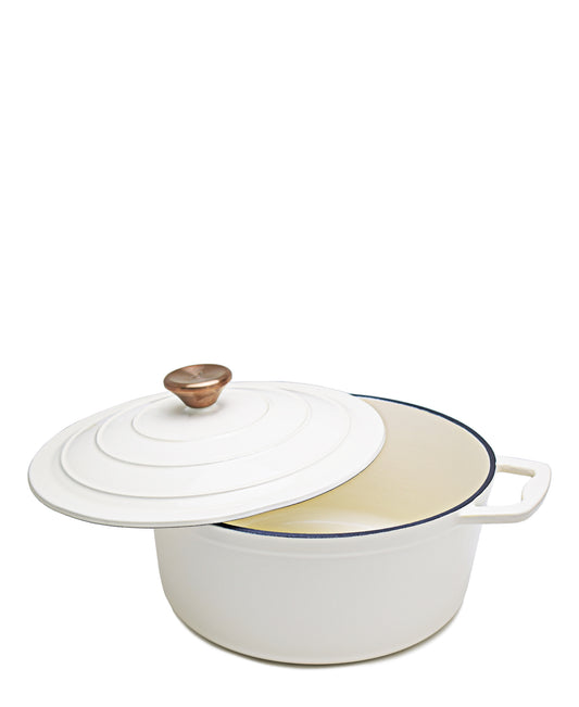 Aqua Enamel Cast Iron Casserole 4,8Litre - White with Bronze Lid