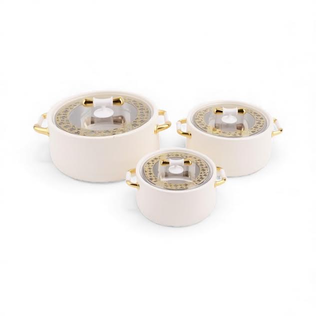 3 Piece Food Warmer Set Cream & Gold