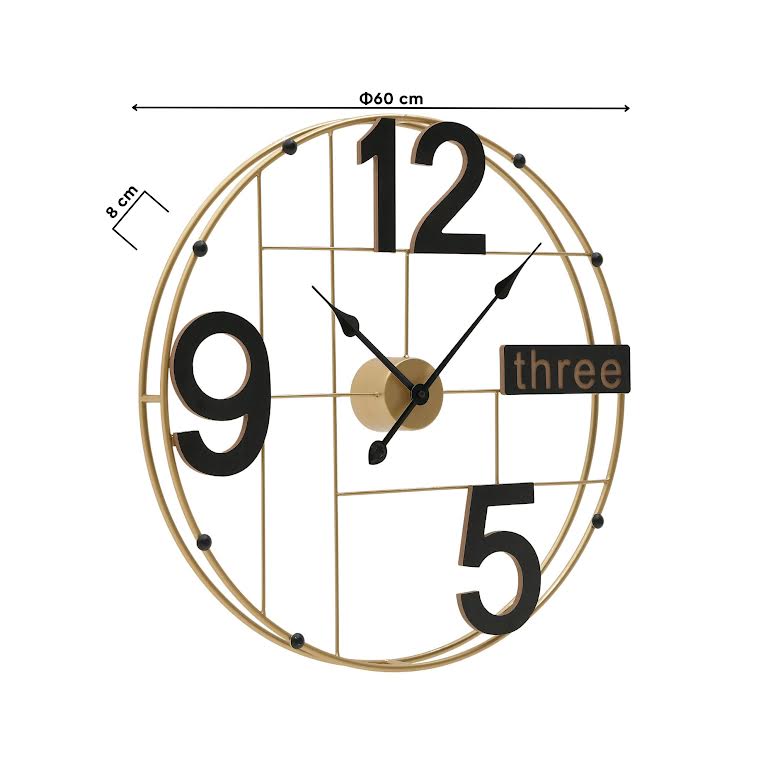 60cm Wall Clock Black & Gold