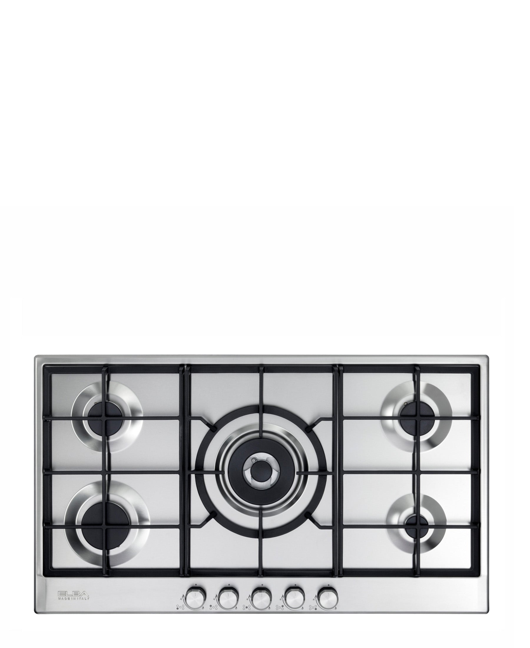 Elba Elio 90cm 5 Burners Gas Hob With Center Wok Burner - Silver