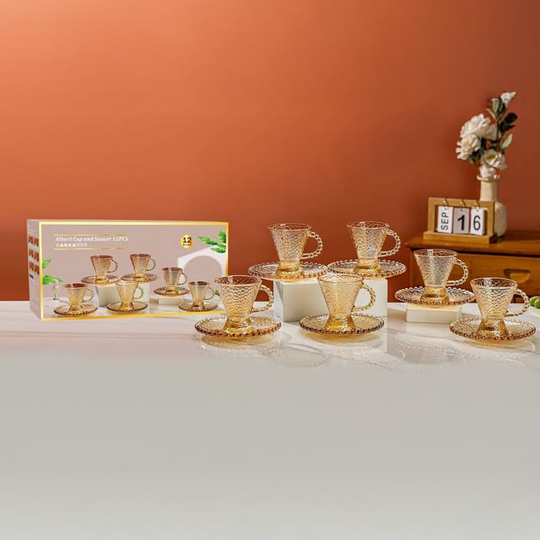 Kitchen Life 12 Piece Cup & Saucer Set Gold