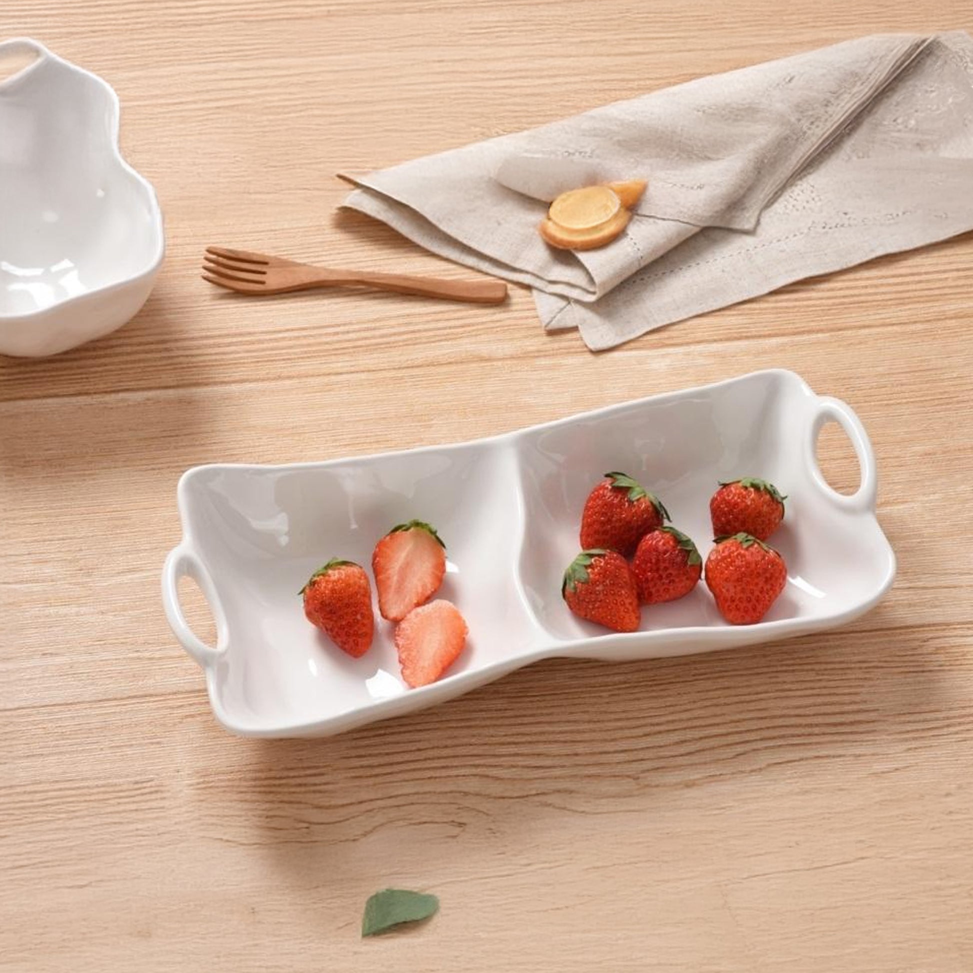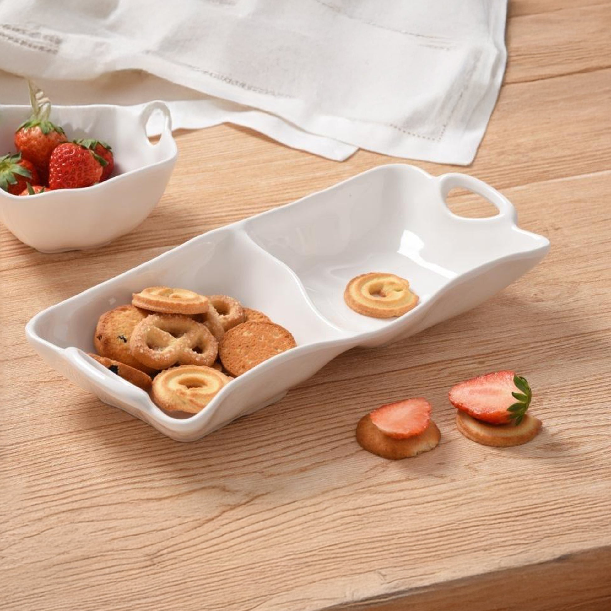 Kitchen Life 2 Division Ceramic Serving Bowl White