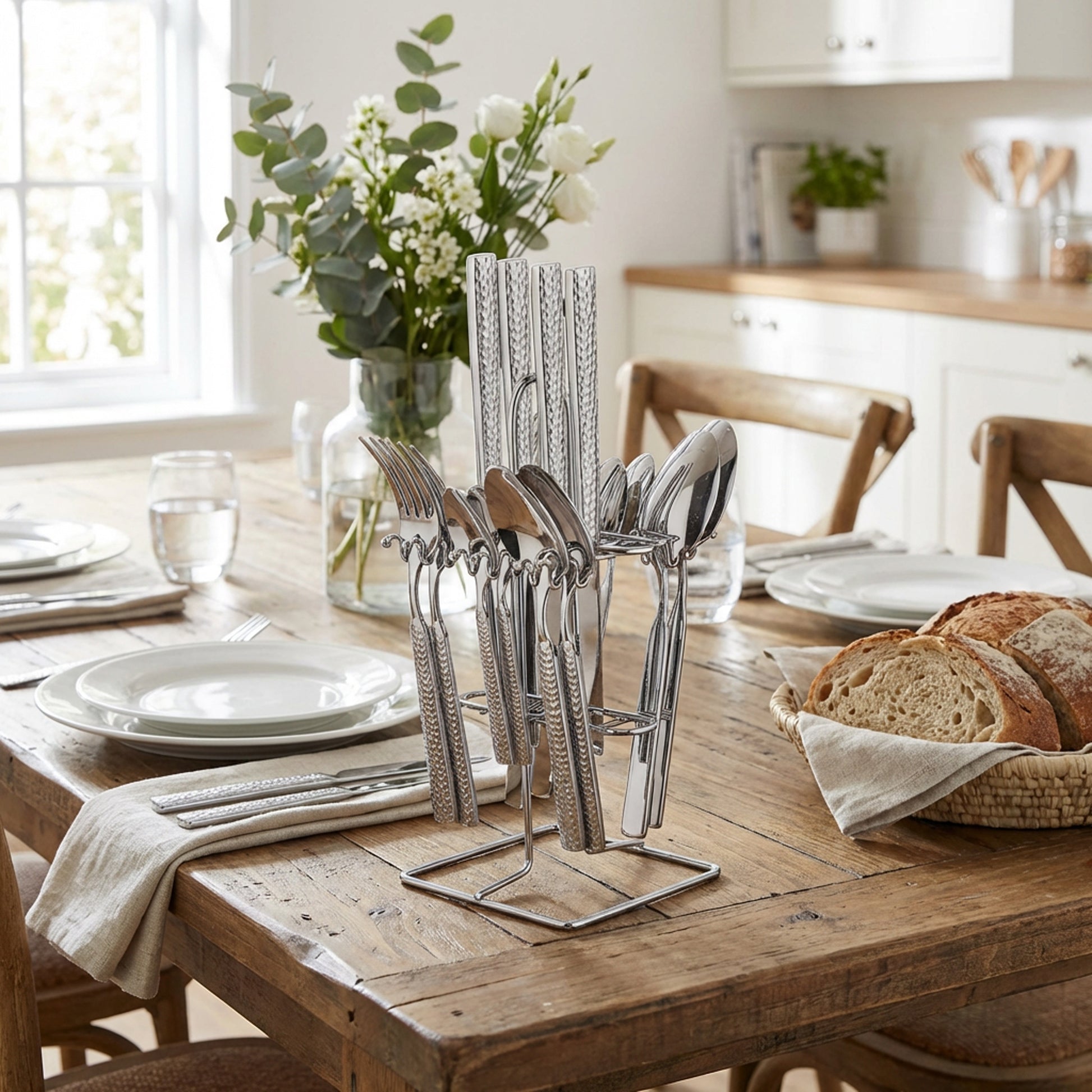 Rolux 16 Piece Hammered Cutlery Set Silver